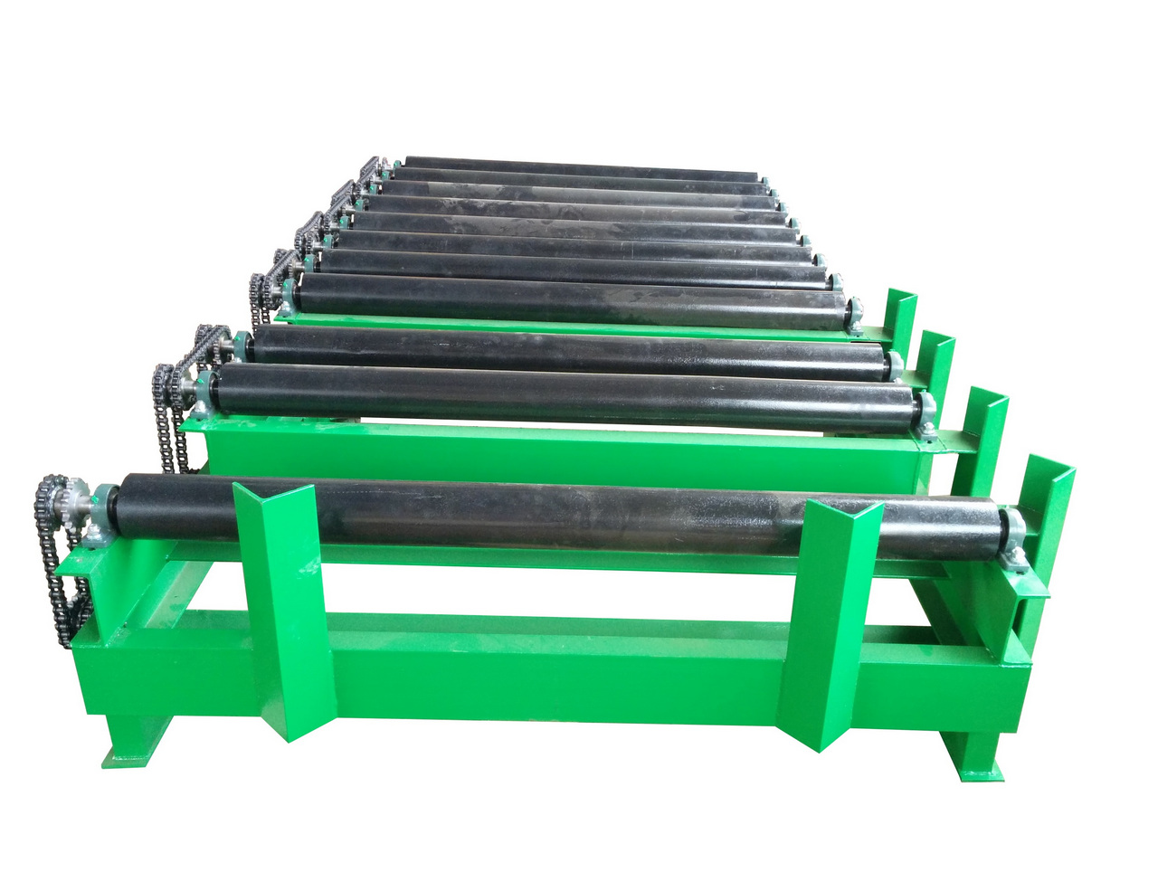 При групповом приводе движущая сила передается на ролики продольным валом, приводными цепями, клиновым ремнем или лентой. При индивидуальном приводе отдельный ролик оснащается своим приводом. Приводные рольганги могут выполняться реверсивными. Роликовые конвейеры условно разделяются на стационарные или переносные и передвижные, монтируемые на колесах. Конвейер собирается из секций, состоящих из опирающейся на стойки рамы и укрепленных на ней роликов.